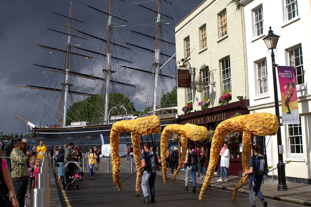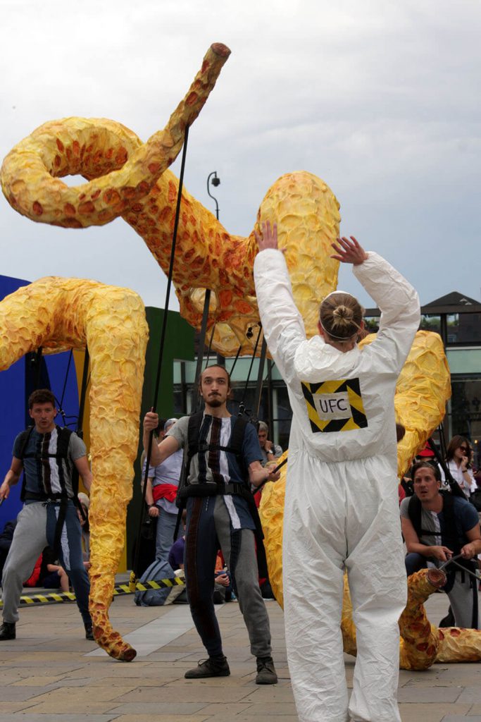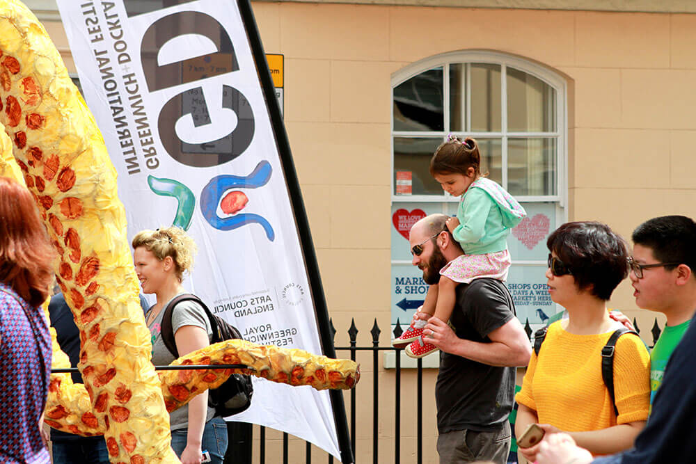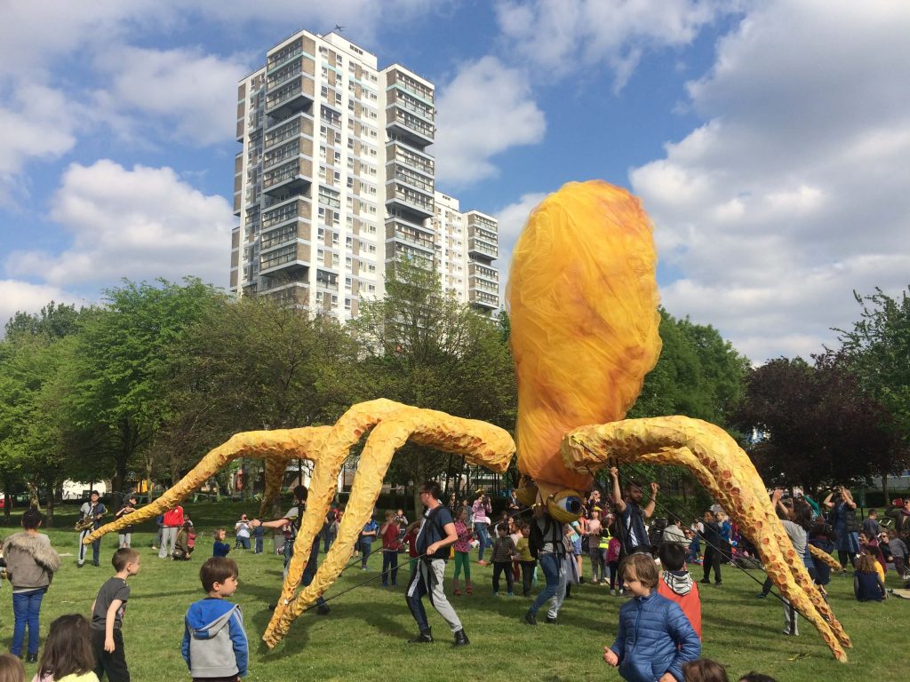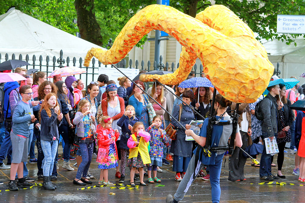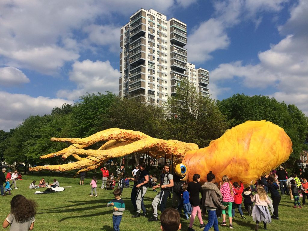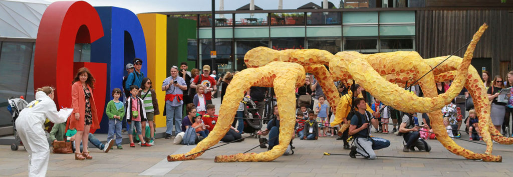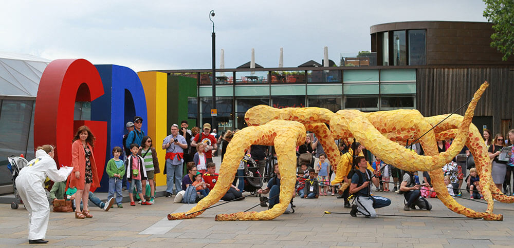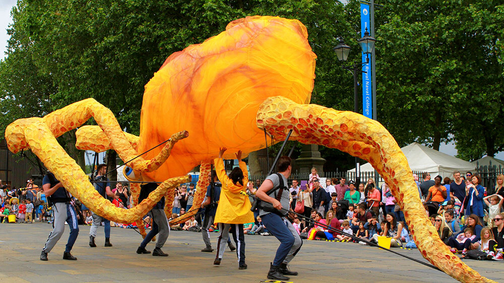 Citizen Squid has toured extensively, appearing at Lyric Hammersmith, Watford Palace, Greenwich + Docklands International Festival, Birmingham Hippodrome, Streets of Battle, Hull Fair, Ramsgate Festival and Pumphouse Gallery.