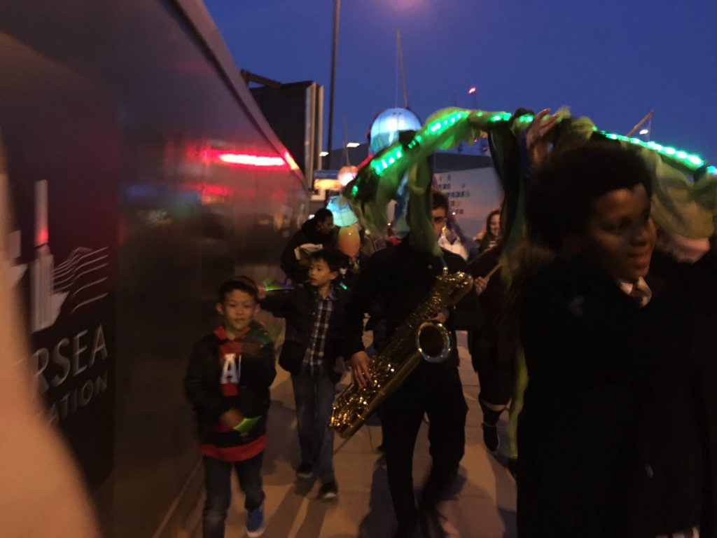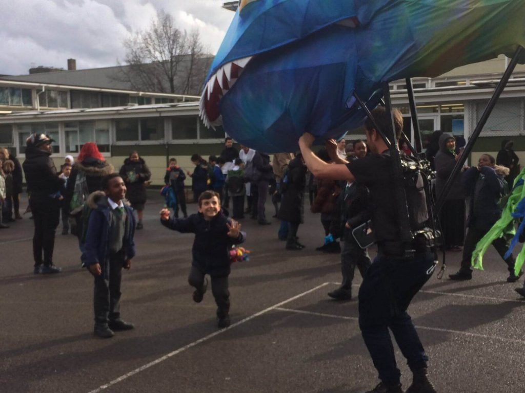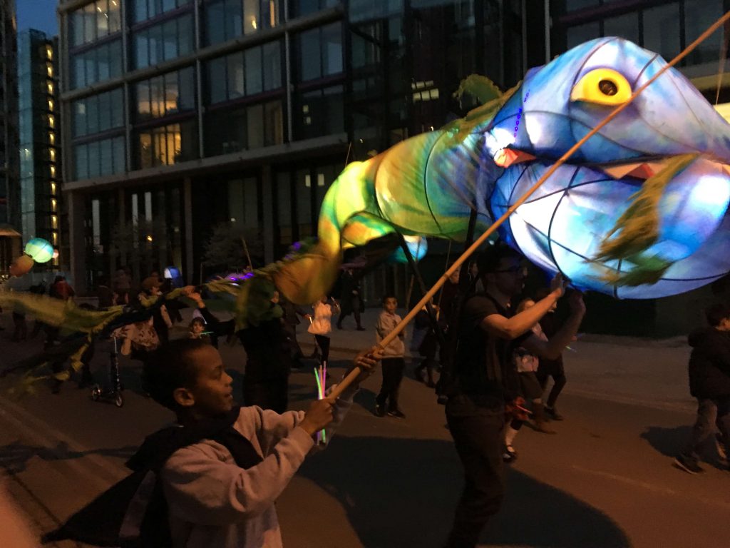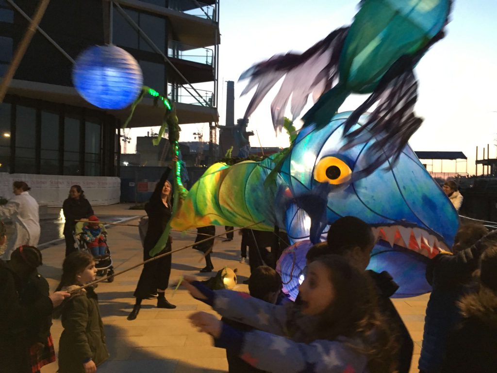 Young people designed and created their very own river monster lanterns, which they paraded alongside a giant toothy tadpole puppet called Arthur created by Puppets with GUTS.