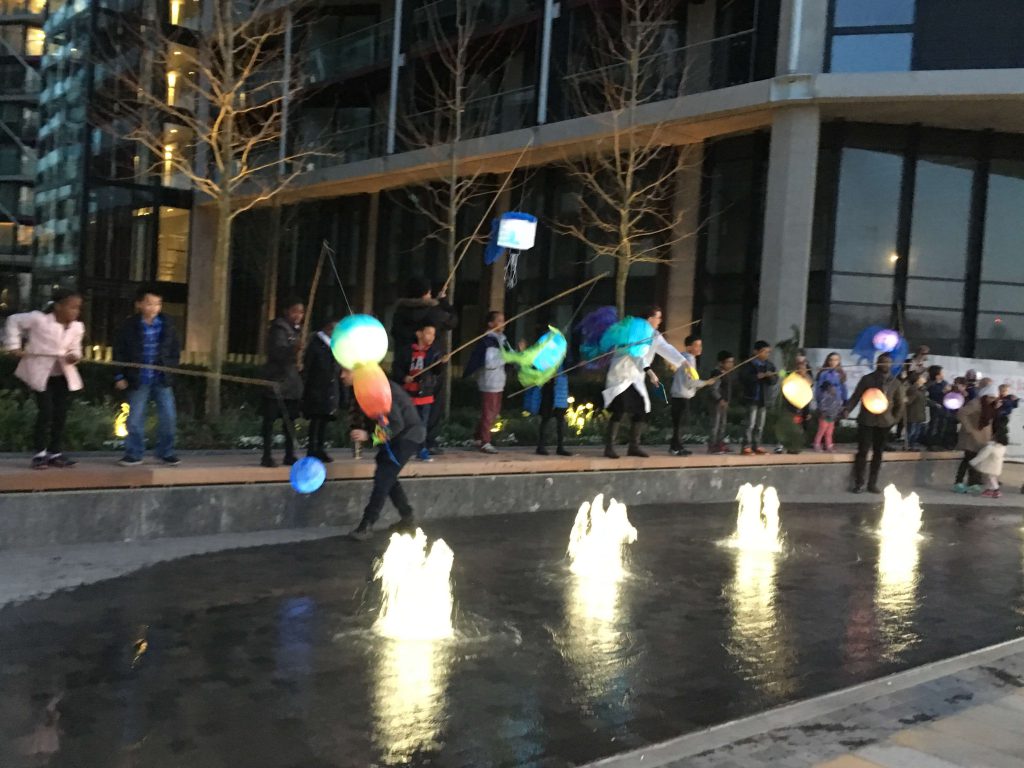The Monster Soup illuminated big puppet parade was a participatory outdoor theatre event that examined the microscopic world of the River Thames in Nine Elms – Wandsworth. Local pupils from St George’s Primary and Griffin Primary schools participated in a workshop series at the Rose Community Centre (SW8 4DL).